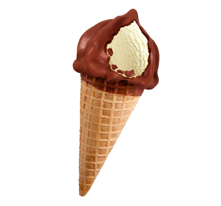 Τραγανό χωνάκι γκοφρέτας, με γέμιση βανίλια παγωτό και επικάλυψη σοκολάτα. Συσκευασία 3kg